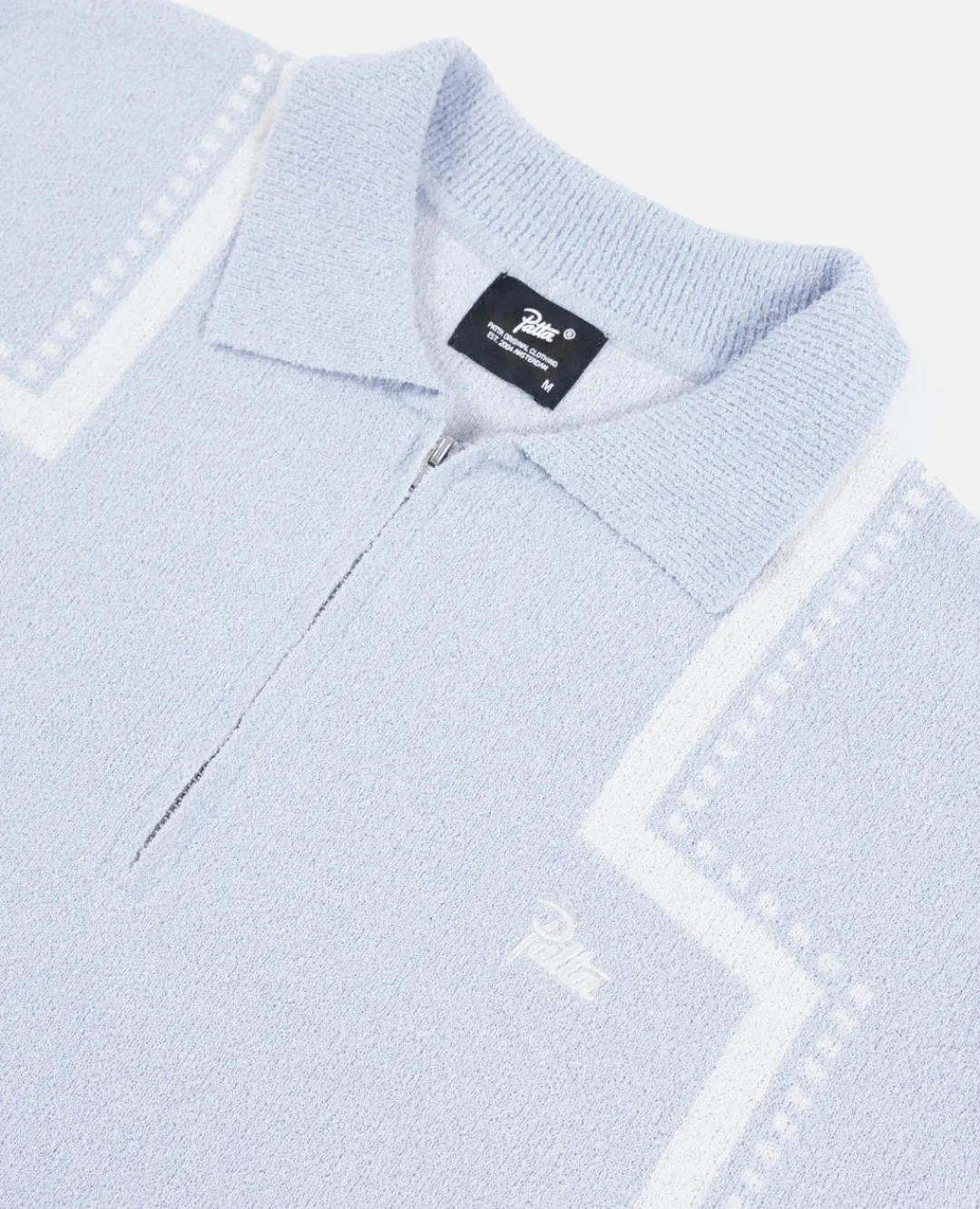 The Patta Spritz Shortsleeve Polo Is Constructed In A 75% Cotton And 25% Polyamide Blend. The Polo Features A Silver Half Zipper. Adorned With A Geometric Jacquard Artwork And An Embroidered Patta Script Logo At Theleft Hand Side Of The Chest.